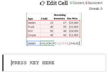 This interactive app will teach you all of the most useful shortcuts for Excel. Keyboard shortcuts allow you to easily complete tasks with just a few keystrokes, saving you valuable time. We estimate that you can see a 2-4x increase in productivity while working in Excel by mastering these shortcuts. GET STARTED BELOW by taking the Intro Test to see how many of the most common shortcuts you know.