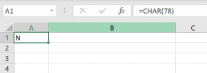 You will see on similar example how to use the Char function in Excel to get a character for ASCII code 78, using this formula: