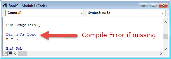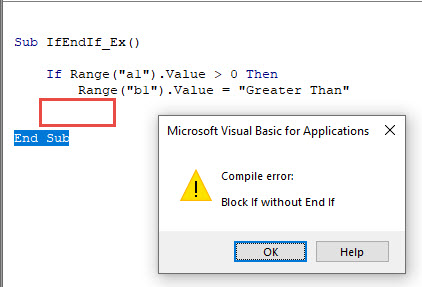 VBA Syntax Errors are errors with code writing. Examples of syntax errors include: