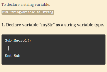 Simply click your desired code example and it will immediately insert into the VBA code editor.